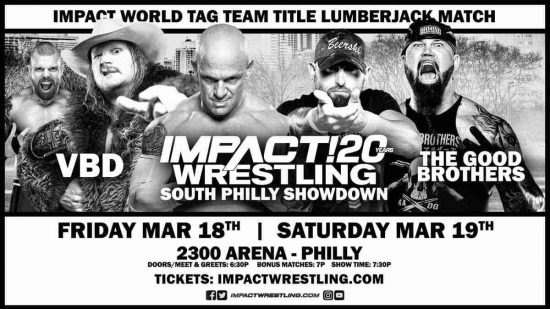 IMPACT Wrestling has announced a Lumberjack match for the Impact World Tag Team Championships for next weekend’s television tapings at 2300 Arena in Philadelphia, PA.
