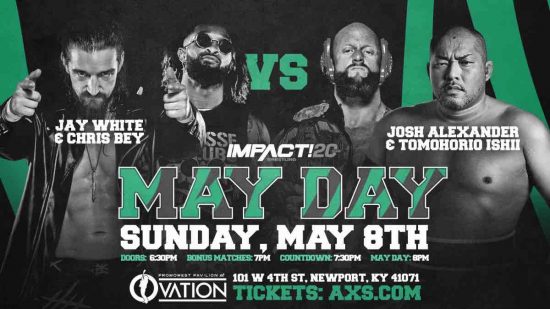 This Sunday, May 8, IMPACT Wrestling is holding an event be billed as “May Day” at the PromoWest Pavilion at Ovation in Newport, KY. Matches will be taped to air on a future IMPACT television episode on AXS TV.