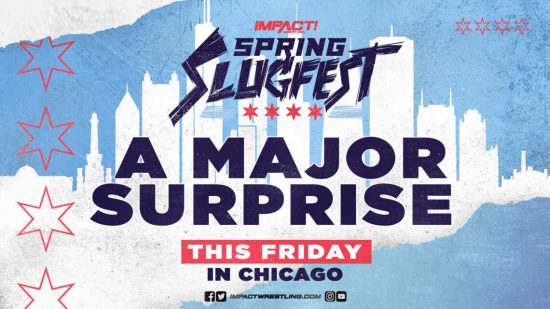 Impact announced via social media that a “major surprise” is coming to their Spring Slugfest tapings in Chicago on Friday.