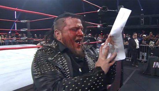 IMPACT Executive Vice President Scott D’Amore presides over the Hold Harmless Contract signing between Sami Callihan, Moose and Steve Maclin for their Barbed Wire Massacre match tomorrow night at Victory Road. By signing the contract, the competitors agree not to hold IMPACT Wrestling or each other responsible for their actions. Moose and Maclin are in the ring but when Callihan’s music hits, he’s nowhere to be found. Moose turns his attention towards Maclin and tells him that his experience as a Marine is nothing compared to being in the ring with him. Maclin fires back and says that Moose hasn’t done the things he’s done or seen the things he’s seen and at Victory Road, it’s not going to be hell on earth – it’s going to be “Mayhem for All”. Callihan finally makes way to the ring to tell Moose and Maclin that they made a grave mistake by aligning with one another in an attempt to take him out. Callihan calls himself the master of puppets and says that he has Moose and Maclin at each other’s throats heading into Barbed Wire Massacre. Following Moose and Maclin, Callihan is about to sign the contract when Maclin jabs a pen into his head. Maclin is about to have Callihan Caught in the Crosshairs when Moose cuts him off with a Spear, bringing their short-lived teamwork to an end. Callihan sends Moose through a table, then spikes him with the Cactus Driver 97. Callihan signs the Hold Harmless Contract in blood as IMPACT! goes off the air.