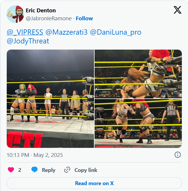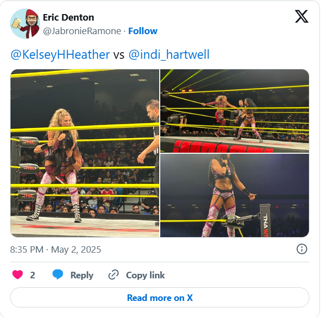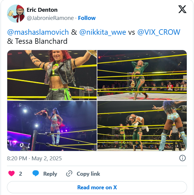 -Tessa Blanchard and Victoria Crawford vs. TNA Women’s Champion Masha Slamovich and Nikkita Lyons ended in a DQ after Masha hit Tessa with a chair. Santino restarted the match but Robert Stone overruled him again.