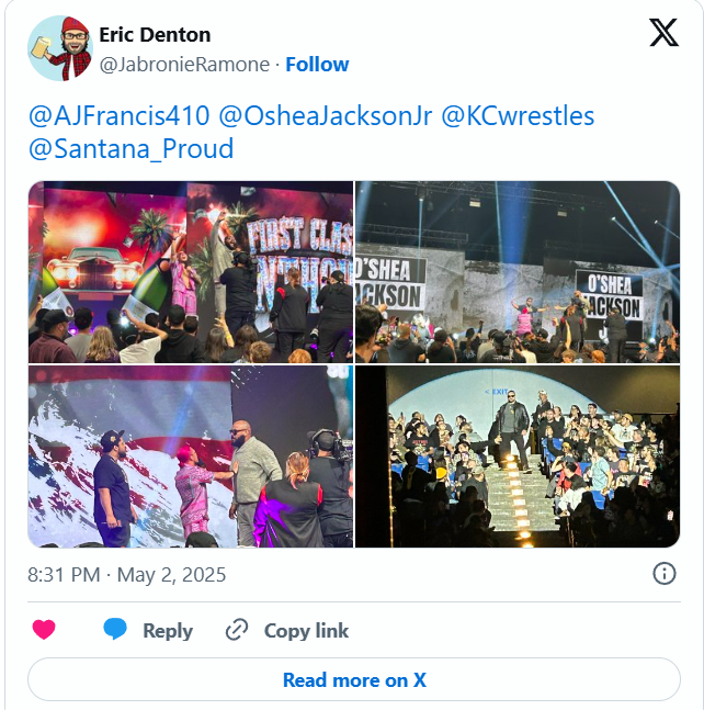 -Frankie Kazarian came out was happy to be back in SoCal. He said Joe Hendry cannot beat him and hates Joe and his fans. Kazarian then brought out NXT’s Trick Williams. Trick said Joe Hendry’s name and he appeared with Elijah. Santino Marella then came out. Robert Stone came out and overruled Santino.
