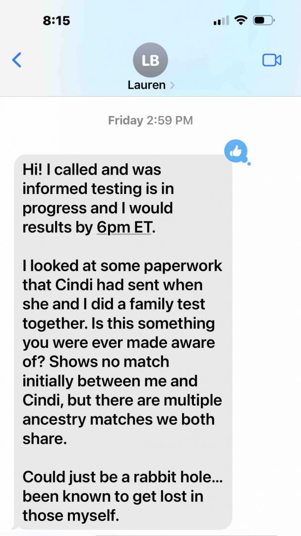 The results came back on May 11, 2023. They were conclusive that I had a 0.0% chance of being the biological father. Once we both reviewed the results Lauren and I agreed that this matter is settled, and I accepted Lauren’s apology on behalf of herself and her mother.