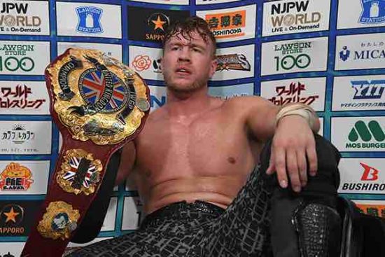 The belt doesn’t make the man, the man makes the belt, and I am sick to death of carrying something I have no attachment to. I don’t want to carry this (US) flag. I’ve been to America and been the best in the world. Canada, Europe, Australia and Japan, I am the best in the world. The best in the world is from the United Kingdom. So to the IWGP committee, have this, I don’t want it. I want a championship that suits my needs. I was going to reveal this when I beat Naito, but shit happens. I am the best in the world, and I want this championship.