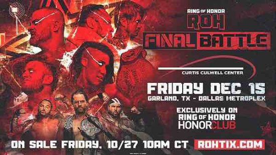Ring of Honor has announced on their website that the Final Battle 2023 pay-per-view will take place on Friday, December 15 from the Curtis Culwell Center in Garland, Texas.
