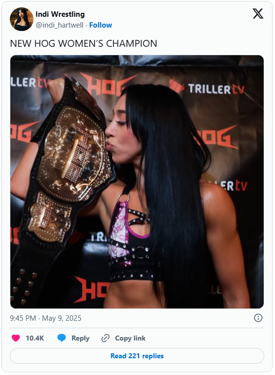 Former WWE talent and newly signed TNA Wrestling star, Indi Hartwell captured the vacant HOG Women’s Champion at the HOG Waging War PPV event, which took place from Logan Square Auditorium in Chicago on Friday night.