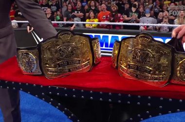 On the 4/19 edition of WWE SmackDown, Triple H and Nick Aldis presented new championship belts to Austin…