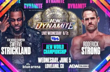 01 min AEW News Featured Top Story World Title Match added to 6/5 episode of AEW Dynamite Swerve Strickland will be defending the AEW World Championship against Roderick Strong on the June 5 episode of… Jerome WilenJune 1, 2024 Read More