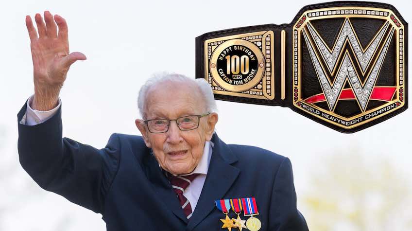 Drew McIntyre gifts WWII Veteran Tom Moore a custom WWE Title for his 100th Birthday