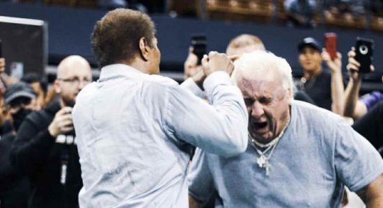Flair got himself involved in the match, attempting to cause interference to help Andrade. Flair then pulled one of his classic tricks of acting like he scared, with then allowed Flair to poke Eddie Colon in the eyes. Carlos Colon came out to a huge pop. The legends stared at each other then took off their jackets to get ready to fight. Flair then tried to punch Colon, but Colon blocked it. Colon and Flair then began to fight on the ramp. Carlos hit Flair with a few punches and then a headbutt. The fight did eventually spill to the back and to the locker room area.