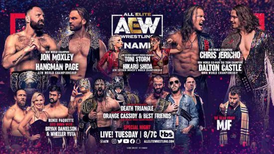 They run down next week’s Dynamite and mention the crowd gave Page a round of applause as he was stretchered out. We cut to Mox in the ring as the commentators are still worried; especially Tazz he looks quite shook up. Mox praises Page and wishes him well and a safe recovery. He says it takes guts and you gotta risk everything when you step in the ring. He says he’s live and says earlier someone was talking shit but the Yankees finished early, so MJF get your suburban ass out here right now.”