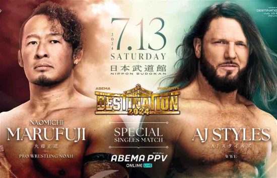 During a Pro Wrestling NOAH event in Yokohama, Japan on Sunday, Styles appeared by video, announcing that he would be facing Naomichi Marfuji at NOAH’s Budokan event on Saturday, July 13.
