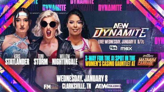 3-Way For #1 Spot in Women’s Gauntlet at 1/5 Dynamite: Willow Nightingale vs. Toni Storm vs. Kris Statlander