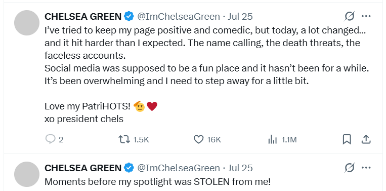 Green’s comments about Hogan apparently drew backlash from fans across social media, which she then addressed in a post on her X account.