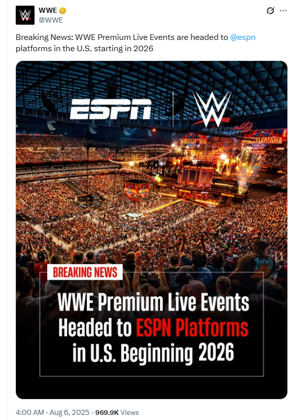 Disney pays out billions to acquire rights to WWE’s PLE events in the US beginning in 2026