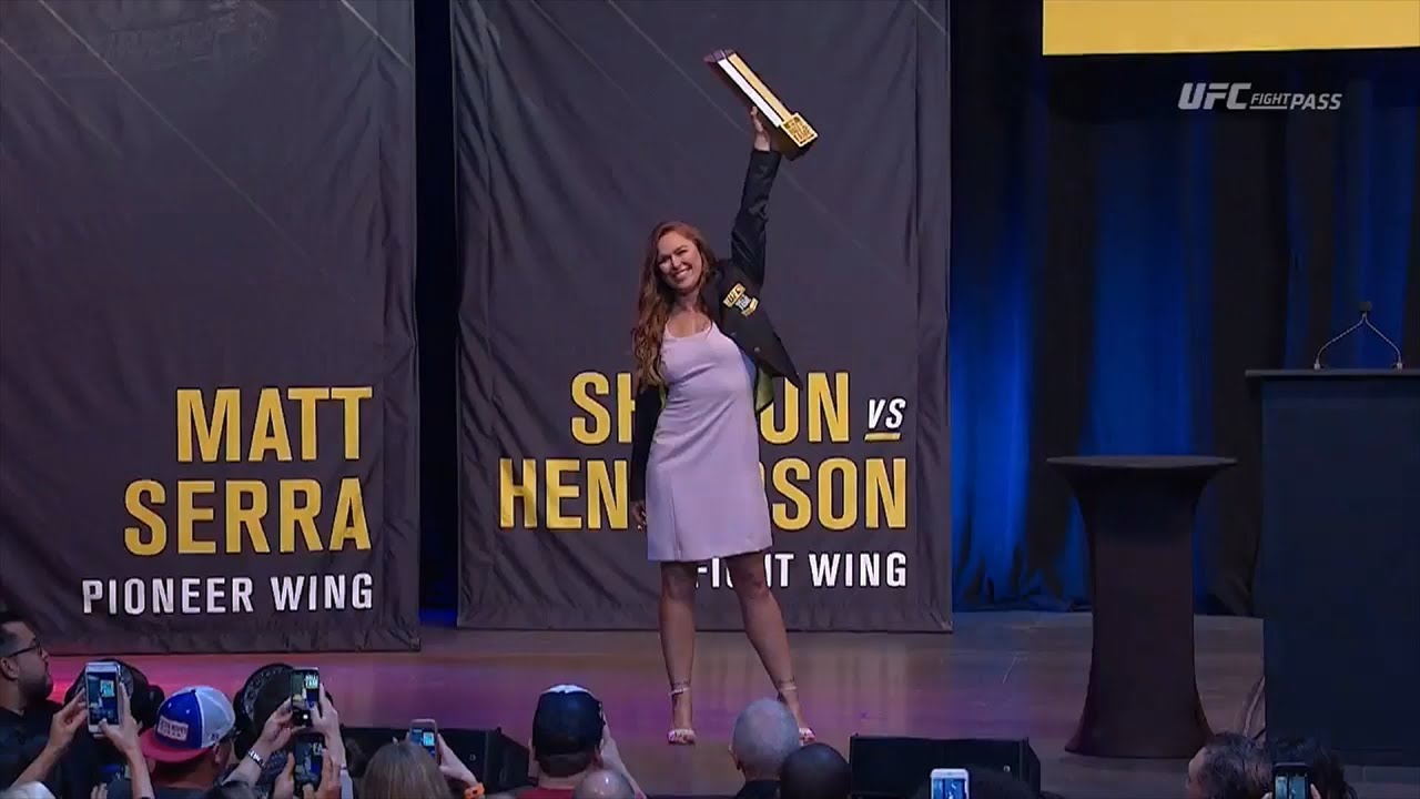 UFC has posted a highlight of last night’s Hall of Fame ceremony in Las Vegas, which featured the induction of former UFC Women’s Bantamweight Champion and current WWE star “Rowdy” Ronda Rousey to close the ceremony last night.