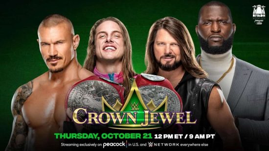 WWE has announced (see below) that RK-Bro (Randy Orton and Riddle) will defend the Raw Tag Team Championships against the former champions of AJ Styles and Omos, at Crown Jewel on October 21 in Saudi Arabia.