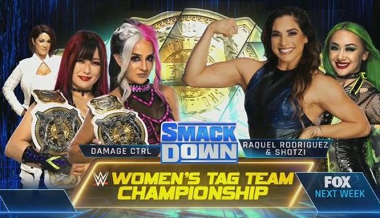 -WWE Women’s Tag Team Championship Match: Damage CTRL (IYO SKY & Dakota Kai w/Bayley) (c) to defend against Raquel Rodriguez & Shotzi