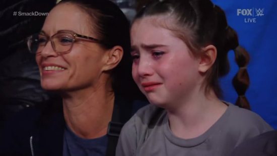 Morgan lost her match on Friday night’s show against Rhea Ripley as she tapped out to a modified Cloverleaf from Ripley. One of the cameramen zoomed in and caught a young girl crying in the crowd.