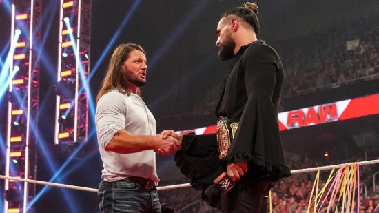 As reported in our coverage of RAW that night, AJ appeared at RAW to give new WWE World Heavyweight Champion Seth “Freakin'” Rollins a show of respect, which was soon interrupted by the arrival of Judgment Day.