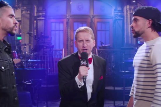 The promo features SNL cast member James Austin Johnson acting a ring announcer who interviews “Benito” (Bad Bunny’s real name is Benito Antonio Martínez Ocasio). “Bentio” is challenging Bad Bunny for championship on the show.