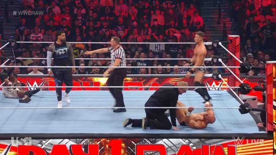 Vinci and Ludwig Kaiser squared off against Jey Uso and Kofi Kingston. During the match, Kingston hit a big dropkick to Vinci’s face as he jumped from the second rope. The referee immediately stopped the match and the WWE doctor rushed in the ring. Kingston and Jey were announced as the winners.