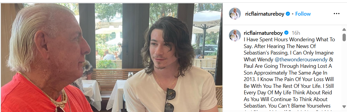 WWE Hall of Famer Ric Flair posted a statement on social media, following the tragic death of his stepson, Sabastian Kidder.