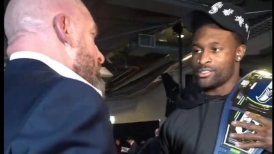 Monday’s 12/2 episode of WWE Raw, which took place at the Angel of Winds Arena in Everett, Washington, saw DK Metcalf of the Seattle Seahawks in attendance.