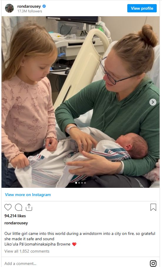 Former WWE Superstar Rhonda Rousey and her husband Travis Browne welcomed their second child into the world