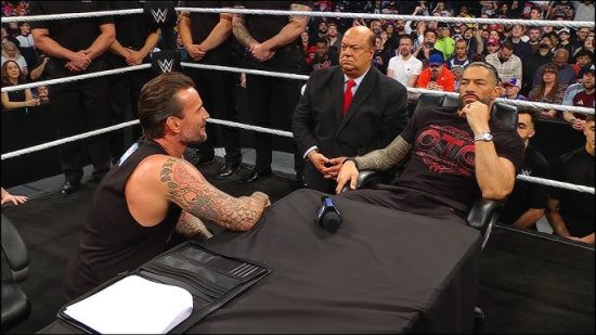 WWE has posted the full segment from Friday’s SmackDown, featuring the WrestleMania contract signing with Roman Reigns, Seth Rollins and CM Punk.