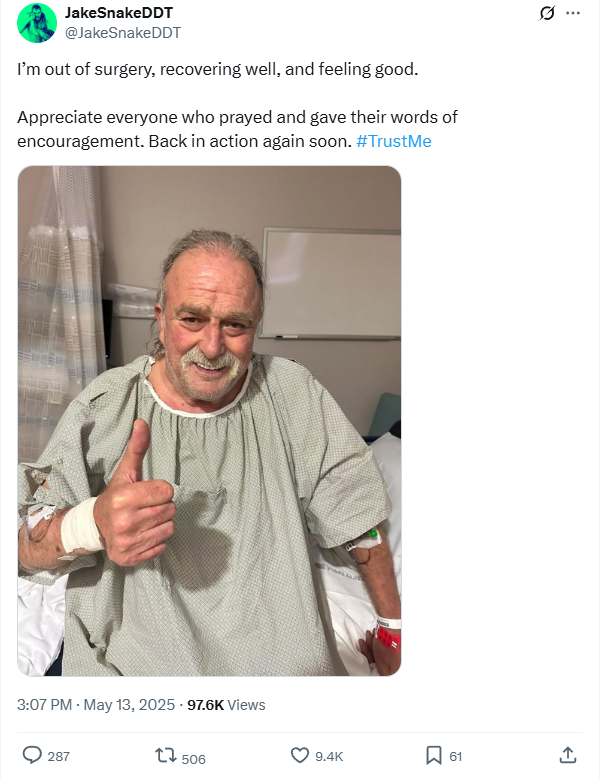 WWE Hall of Famer Jake “The Snake” Roberts revealed on Tuesday he underwent heart surgery.