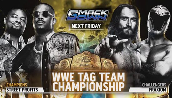 -WWE Tag Team Champions The Street Profits (Montez Ford and Angelo Dawkins) defends against Fraxiom (Nathan Frazer and Axiom)