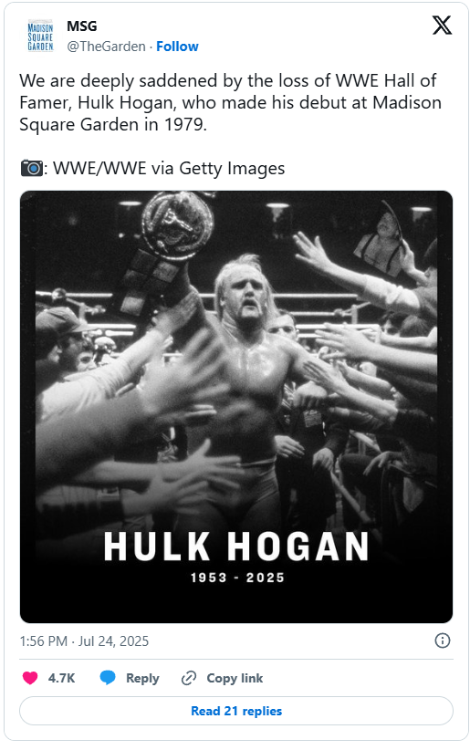 WWE Hall of Famers “Stone Cold” Steve Austin and Eric Bischoff, along wtih Madison Square Garden paid tribute to Hulk Hogan.