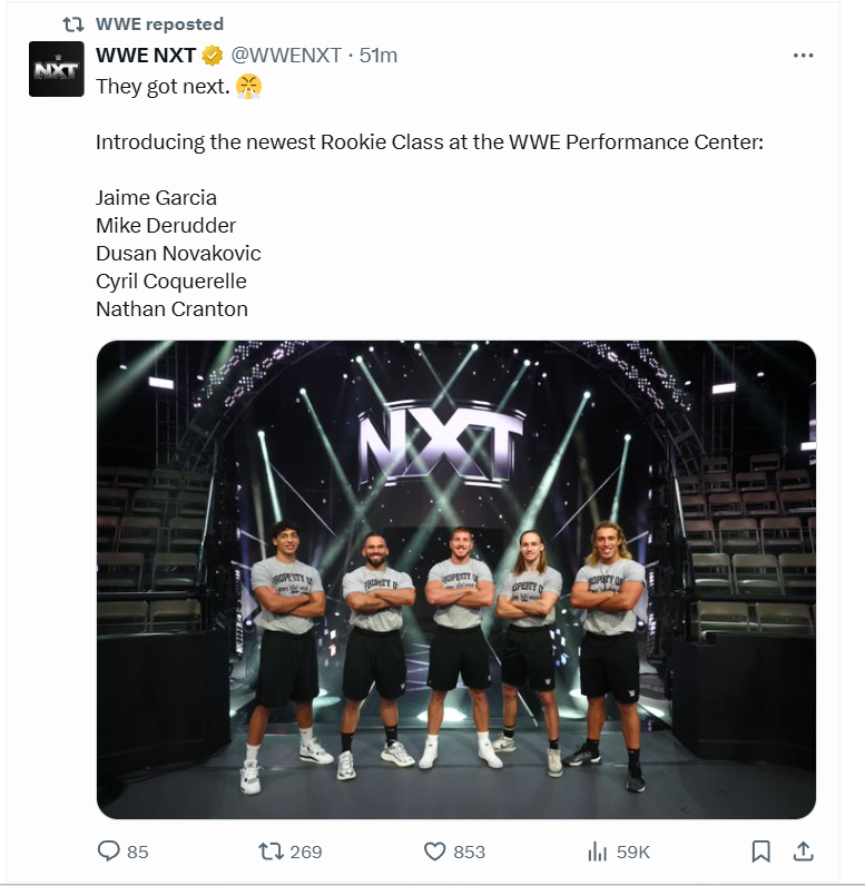 WWE NXT has announced five new recruits for the rookie class at the Performance Center in Orlando, Florida.