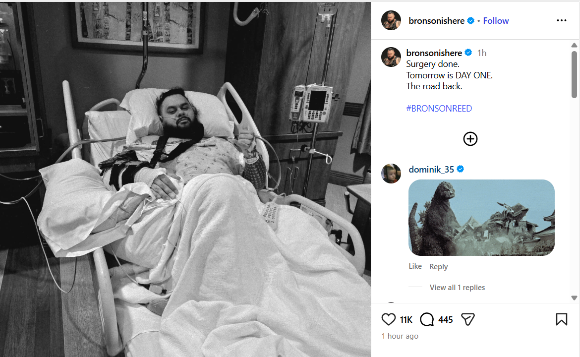 WWE’s Bronson Reed posted on social media that he underwent surgery for his torn biceps he suffered on this past Monday’s Raw.