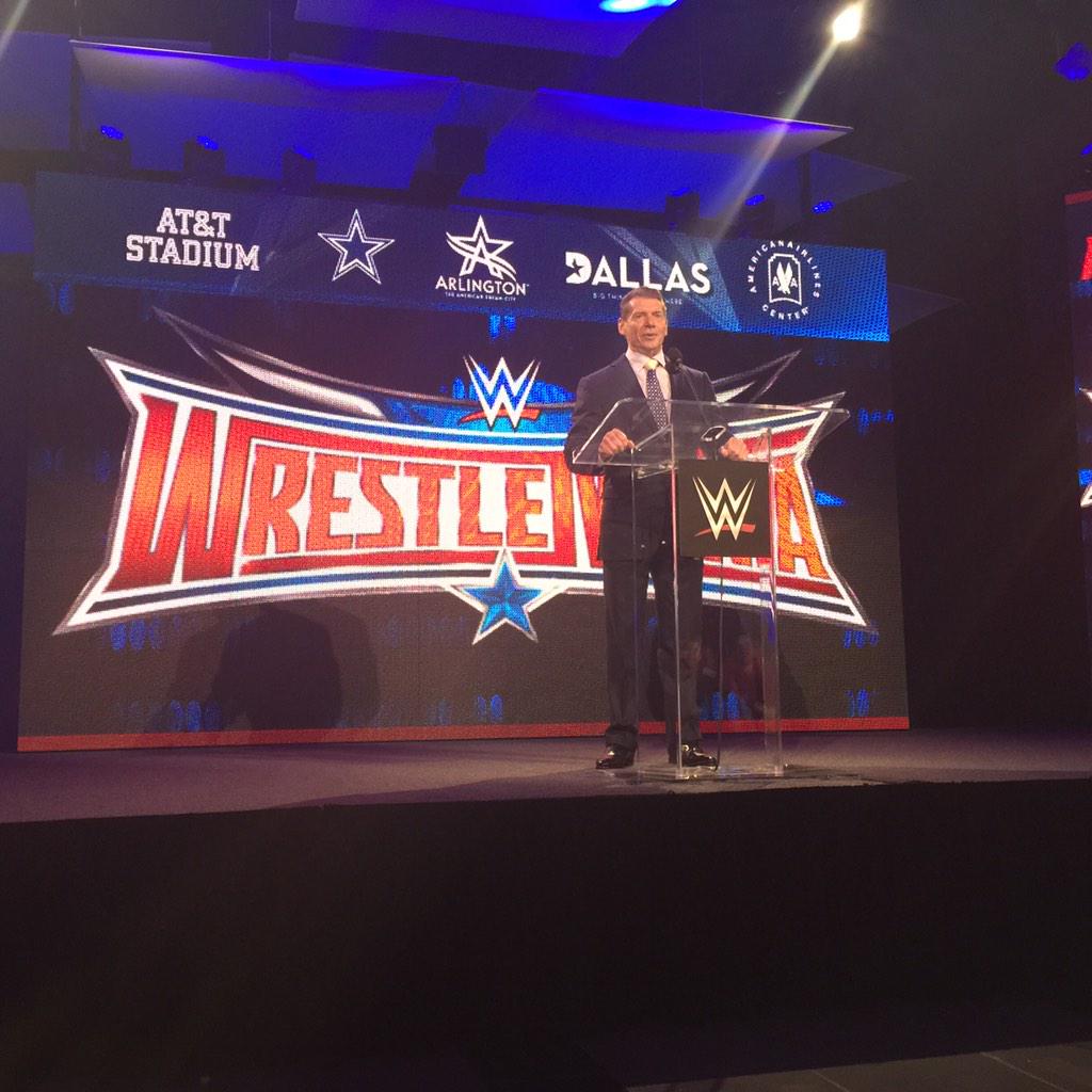 WWE held a press conference earlier today to officially announce WrestleMania 32 at AT&T Stadium in Arlington, Texas on April 3, 2016. The press conference featured many WWE stars, former Dallas Cowboys football players and the mayor of Arlington.