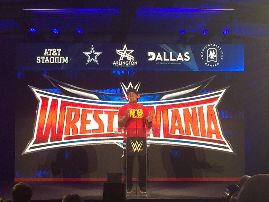 .@HulkHogan takes the stage to announce @WrestleMania is coming to @ATTStadium in 2016.