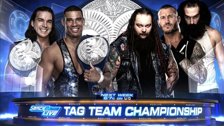 NEXT WEEK: The #WyattFamily challenges @JasonJordanJJ and @WWEGable for the #SDLive #TagTeamTitles! @WWEBrayWyatt @RandyOrton @LukeHarperWWE pic.twitter.com/LPk5r2R6sK