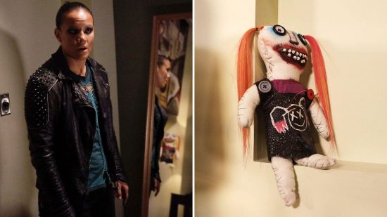 Baszler is backstage and the lights are still flickering. A crate and a metal trellis nearly fall on her. Baszler eventually runs to a locker room, locks the door with a chain, and puts some chairs in front of it. Baszler keeps saying it’s just a stupid doll. Baszler sees Lilly in the mirror, but turns and it isn’t there. Baszler eventually kicks the mirror, shattering it. Lilly is seen in the broken pieces. The lights go out and Baszler screams to end the show. Yep.