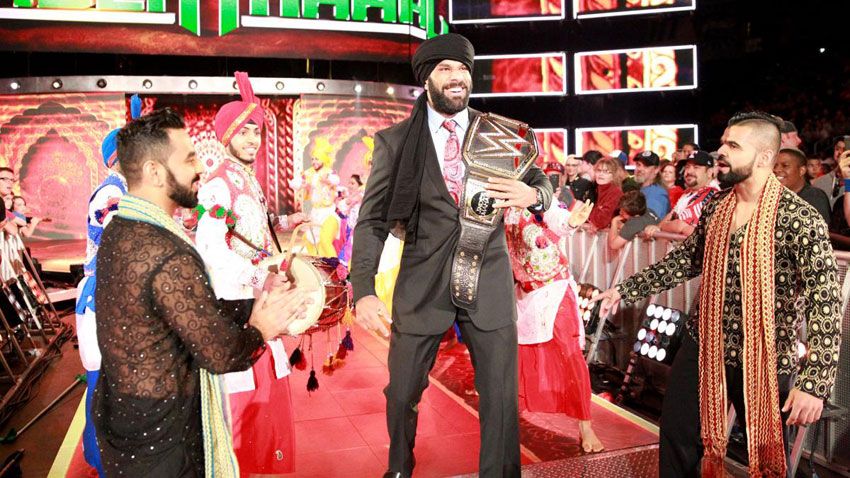 The segment kicks off with dancing and live music being played. The Singh Brothers walk out smiling. The new WWE Champion Jinder Mahal is introduced. JBL points out that Mahal is the 50th WWE Champion in company history during his walk to the ring.
